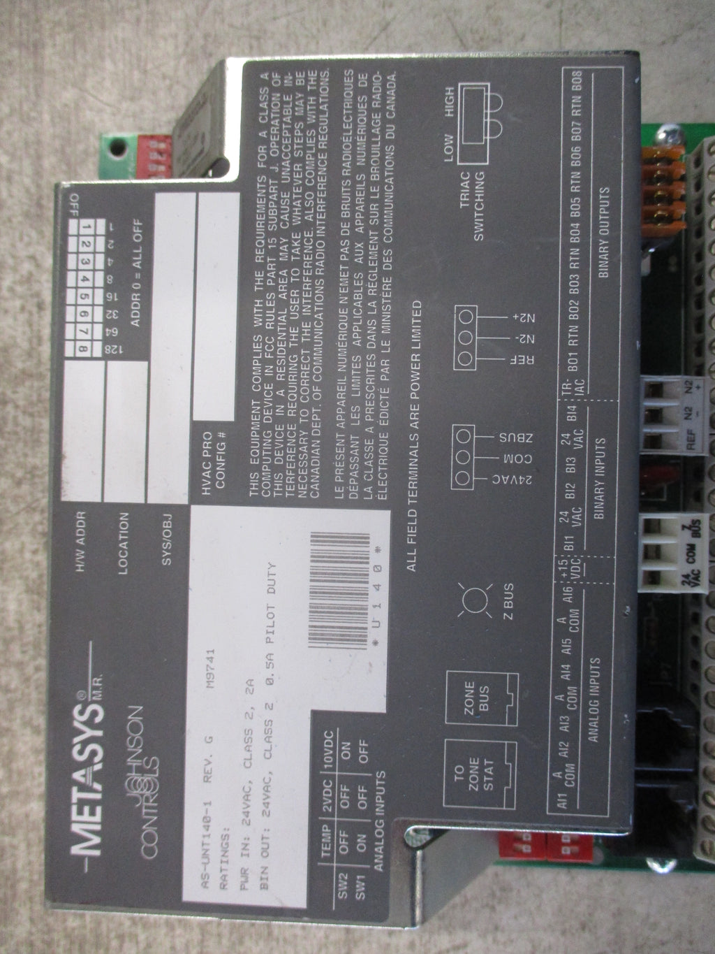 Johnson Controls Metasys Unitary Controller AS-UNT140-1 Rev. G 24V Used LOC 56H4-35