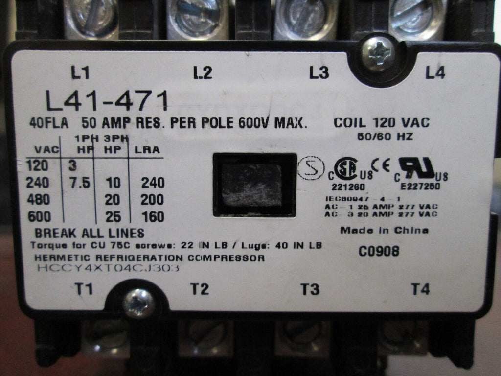 Johnstone Supply Contactor L41-471 HCCY4XT04CJ303 40FLA 120V Coil 600V Used