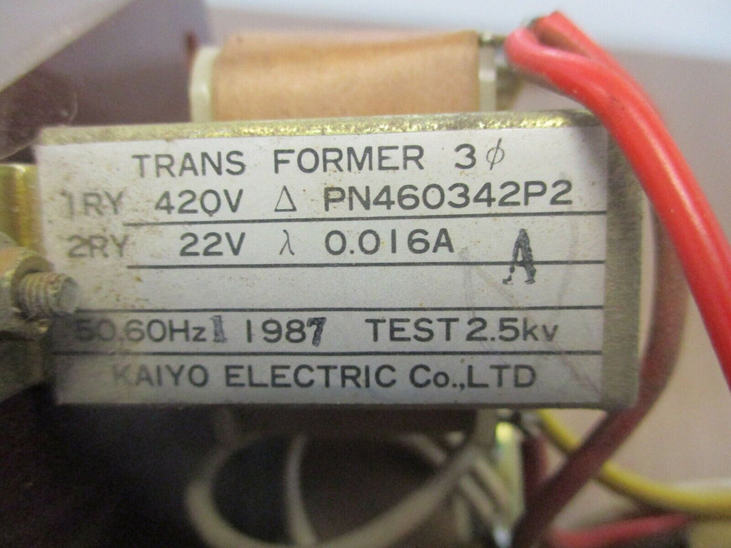 Kaiyo Transformer Assembly 460342P2 Pri: 420V Sec: 22V 0.016A 3Ph Used