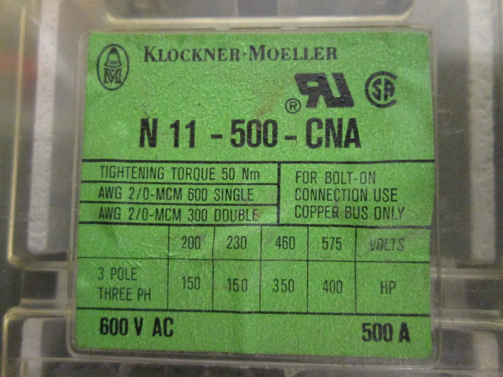 Klockner Moeller Circuit Breaker Disconnect N11-500-CNA 500A 6...