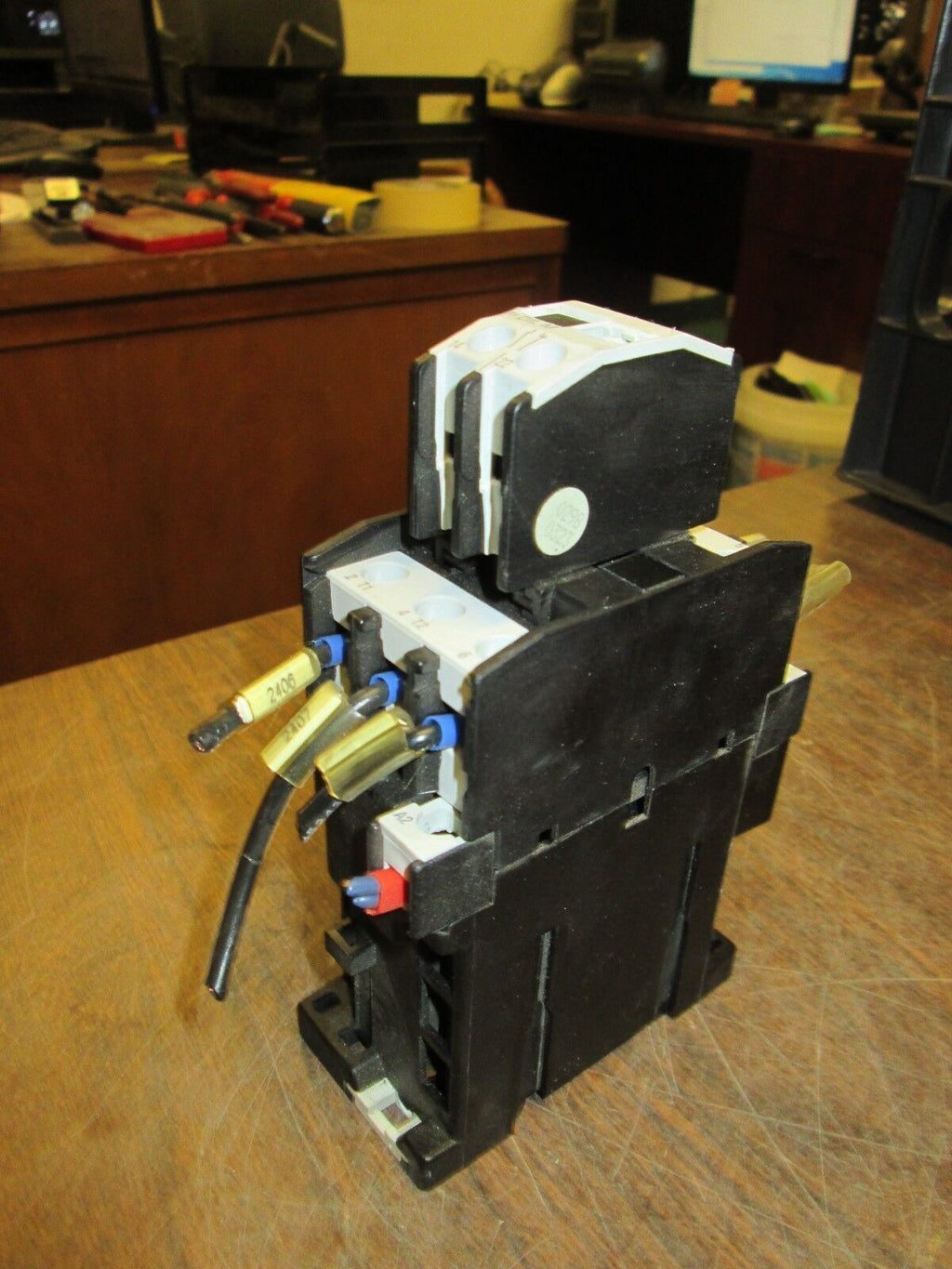 Klockner Moeller Contactor w/ Aux Contact Block DIL0M-G 24VDC Coil 35A 600V Used Condition: UsedBrand: Klockner MoellerModel: Contactor w/ Aux Contact BlockMPN: DIL0M-G Klockner Moeller Contactor w/ Aux Contact Block DIL0M-G 24VDC Coil 35A 600V Used Klockner Moeller Contactor w/ Aux Contact Block DIL0M-G 24VDC Coil 35A 600V UsedLOC# 18K4-31 Klockner Moeller Contactor w/ Aux Contact Block DIL0M-G 24VDC Coil 35A 600V Uséd LOC# 18K4-31