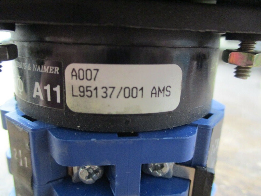 Kraus & Naimer All Rotary Switch L95137 Used_x000D_ Condition: UsedMPN: L95137Brand: Kraus & Naimer Kraus & Naimer All Rotary Switch L95137 Used Kraus & Naimer All Rotary Switch Part #: L95137 UsedLOC 17K3-32 Kraus & Naimer All Rotary Switch Part #: L95137 Uséd LOC 17K3-32