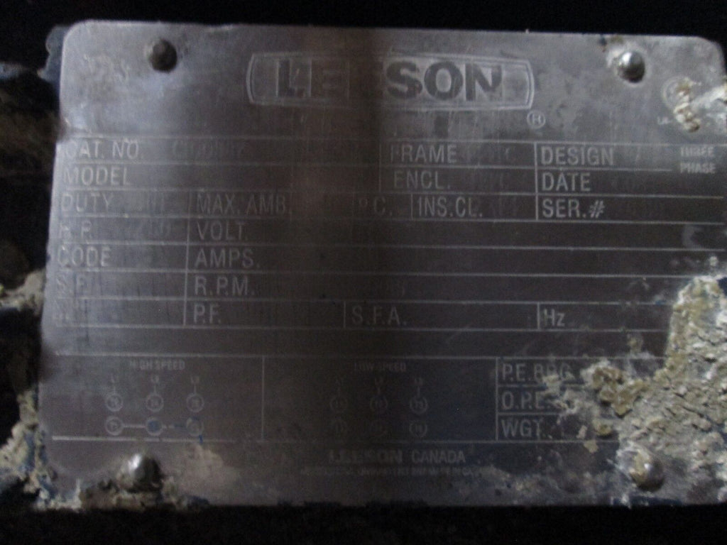 Leeson AC Motor C100387 50HP 1785RPM 460V 444TC Frame Used Condition: UsedBrand: LeesonModel: AC MotorMPN: C100387 Leeson AC Motor C100387 50HP 1785RPM 460V 444TC Frame Used Leeson AC Motor Part #: C100387 50HP 1785RPM 460V 444TC Frame UsedLOC AB9G3-1 Leeson AC Motor Part #: C100387 50HP 1785RPM 460V 444TC Frame Uséd LOC AB9G3-1