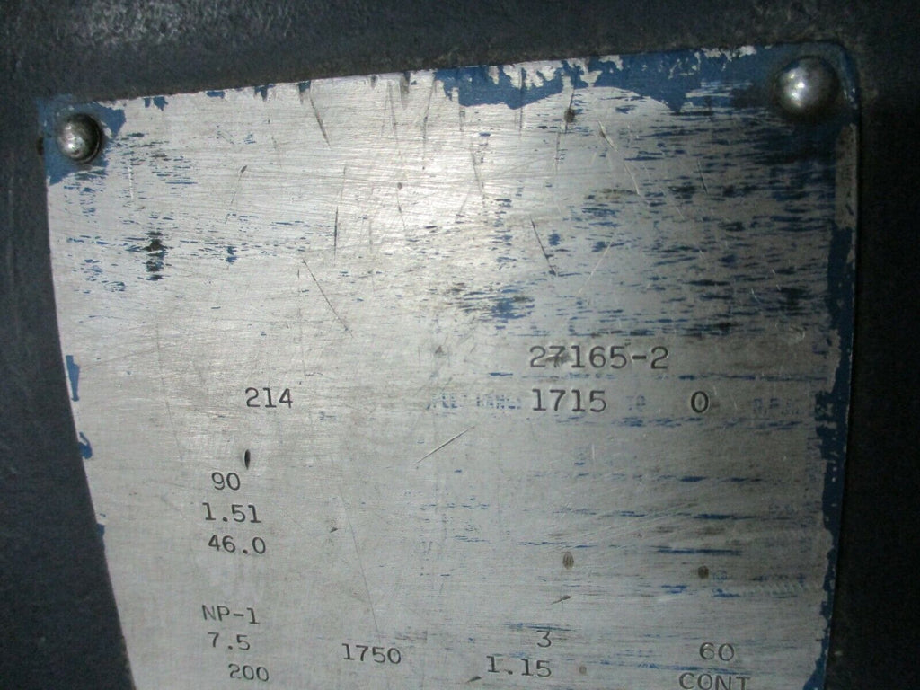 Louis-Allis AC Motor 27165-2 7.5HP 1800RPM 60Hz 3Ph 214 Frame Used Louis-Allis AC Motor Part #: 27165-2 7.5HP 1750RPM 60Hz 3Ph 214 Frame Used Weight: 300 lbs. LOC AB11-3460 / (AB40L3) Louis-Allis AC Motor Part #: 27165-2 7.5HP 1750RPM 60Hz 3Ph 214 Frame Uséd Weight: 300 lbs. LOC AB11-3460 / (AB40L3)