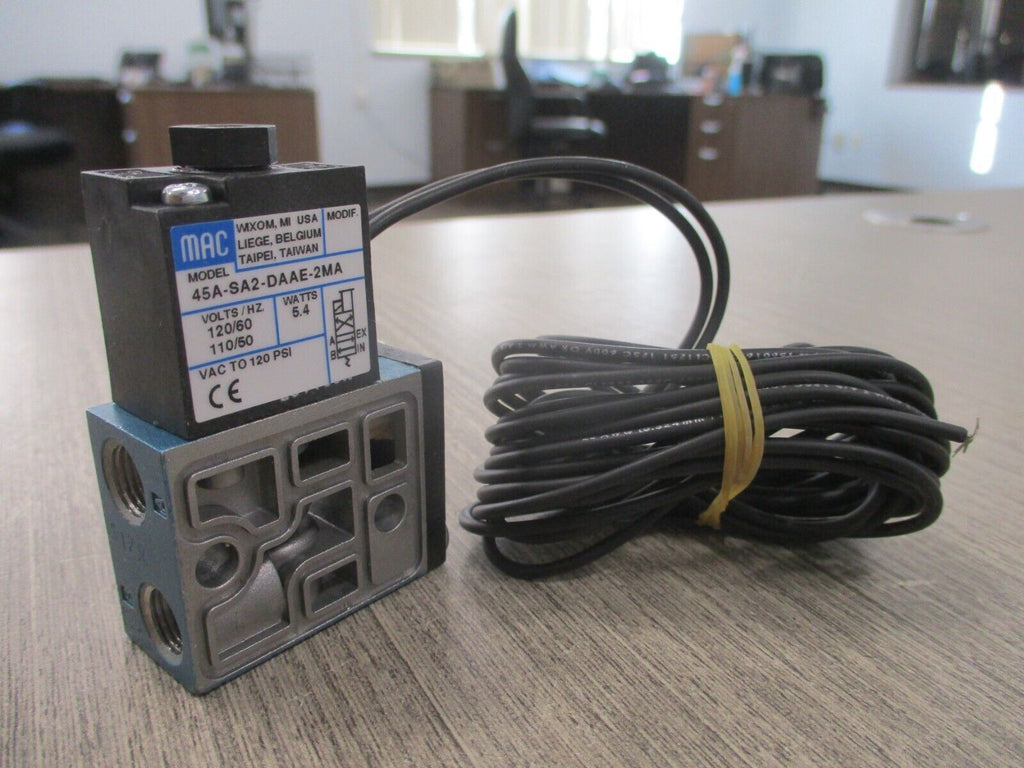 MAC Solenoid Valve 45A-SA2-DAAE-2MA 120V 5.4 W VAC to 120 PSI Used_x000D_ Condition: UsedBrand: MACMPN: 45A-SA2-DAAE-2MAValve Operation: Solenoid MAC Solenoid Valve 45A-SA2-DAAE-2MA 120V 5.4 W VAC to 120 PSI Used MAC Solenoid Valve Part #: 45A-SA2-DAAE-2MA 120V 5.4 W VAC to 120 PSI UsedLOC: 27D1-20 MAC Solenoid Valve Part #: 45A-SA2-DAAE-2MA 120V 5.4 W VAC to 120 PSI Uséd LOC: 27D1-20