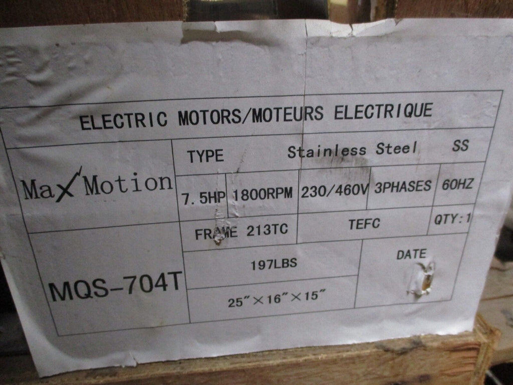Max Motion Stainless Steel AC Motor MQS-704T 7.5HP 1800RPM 230/460V New Surplus