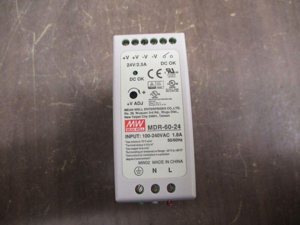 Mean Well Power Supply Part #: MDR-60-24 Input: 100-240 VAC 1.8 A 50/60 Hz Output: 24 VDC 2.5 A Used Loc: 27C5-18