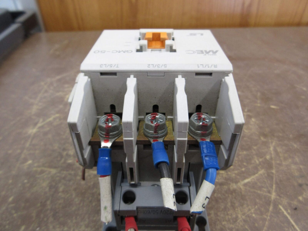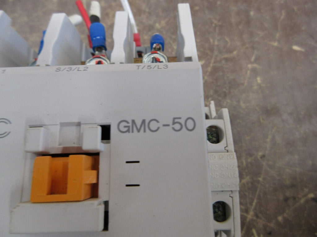 MEC Contactor GMC-50 220V Coil w/ Aux Contact *Missing Terminal Cover* Used MEC Contactor Part #: GMC-50 220 V Coil w/ Aux Contact *Missing Terminal Cover* Used Loc: 59F5-36