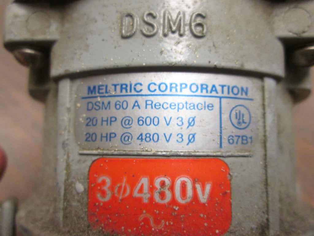 Meltric Receptacle w/ Base Part #: DSM00A 20HP 480V/600V 3Ph Approx. 27A Used LOC: 57L2-7