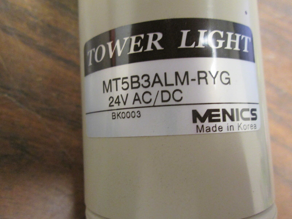 Menics Tower Light Part #: MT5B3ALM-RYG Red-Amber-Green 24V UsedLOC 2K3-36- Part #: MT5B3ALM-RYG