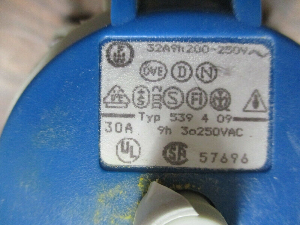 Mennekes Receptacle w/ Base Part #: 539 4 09 30A 250V 3Ph *Broken Latch* Used LOC: 57L5-17