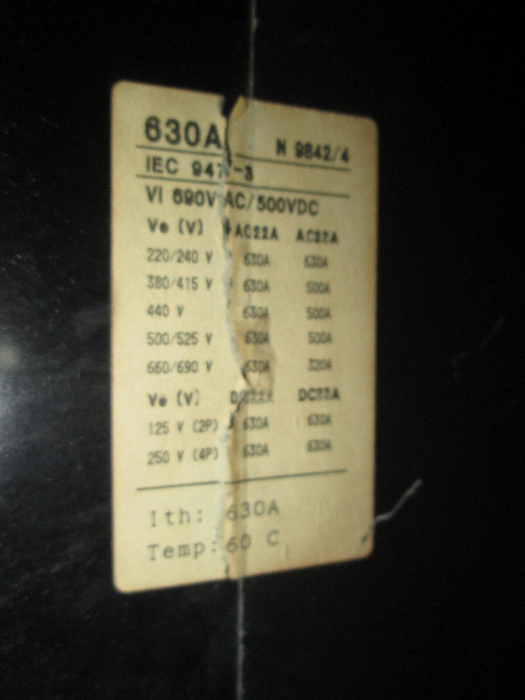 Merlin Gerin IN630 Disconnect Switch N 9842/4 630A 240/415/440...