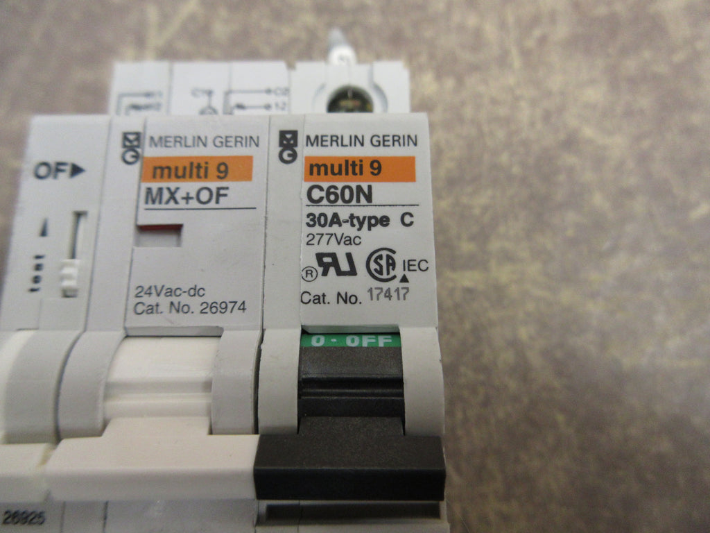 Merlin Gerin Multi 9 C60N Circuit Breaker 17417 30A 277V 1P w/ (2) Adder Poles