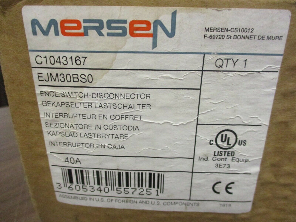 Mersen Enclosed Disconnect Switch EJM30BS0 40A 600V Nema 4x,12 New Surplus
