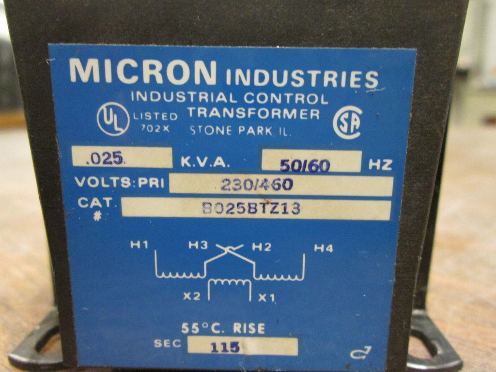 Micron Control Transformer B025BTZ13 0.025KVA Pri:230/460V Sec:115V 50/60Hz Used