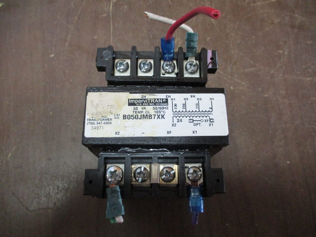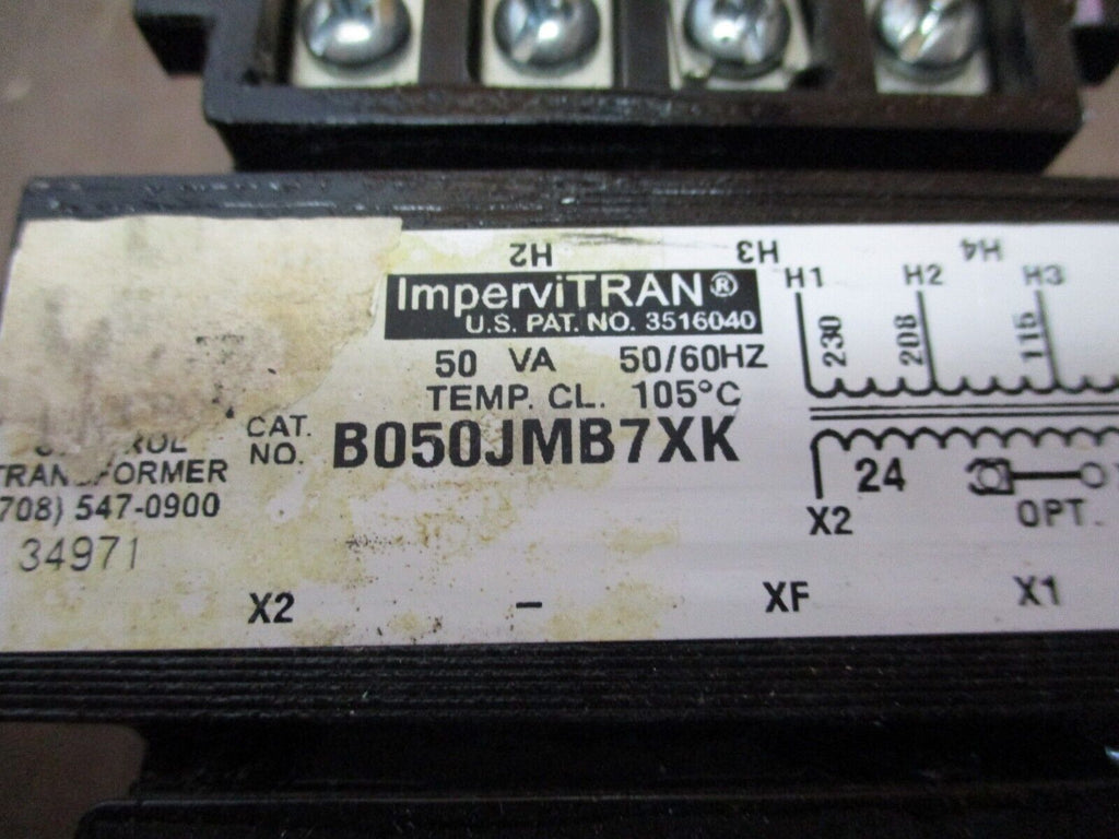 Micron ImperviTRAN Control Transformer Part #: B050JMB7XK 50 VA Pri: 115/208/230 V Sec: 24 V50/60 Hz Used Loc: 21A3-57- Part #: B050JMB7XK
