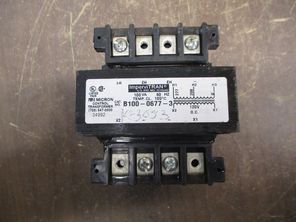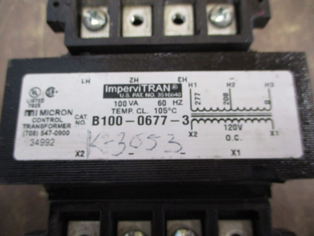 Micron ImperviTRAN Control Transformer B100-0677-3 100VA Pri: 208/277V Sec: 120V