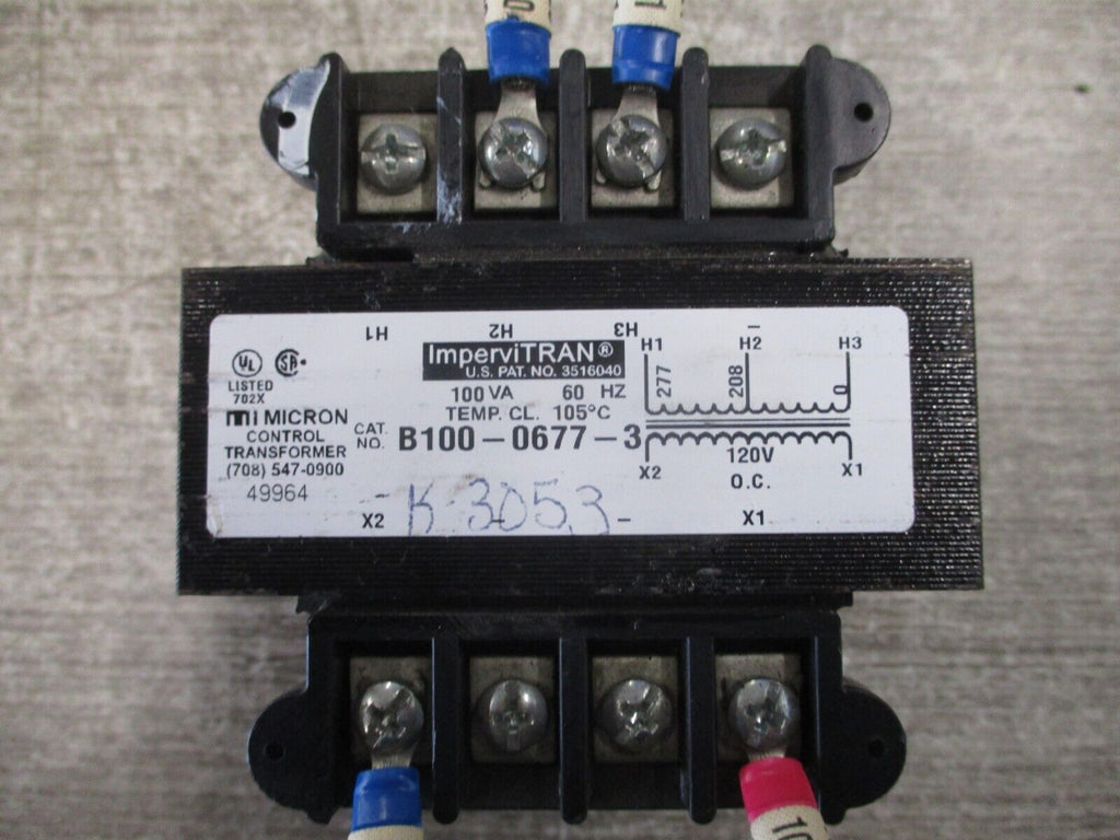 Micron ImperviTRAN Control Transformer B100-0677-3 100VA Pri: 208/277V SEC: 120V Micron ImperviTRAN Control Transformer B100-0677-3 100VA Pri: 208/277V SEC: 120V60HzUsedLOC 17M3-16 Micron ImperviTRAN Control Transformer B100-0677-3 100VA Pri: 208/277V SEC: 120V60HzUsédLOC 17M3-16