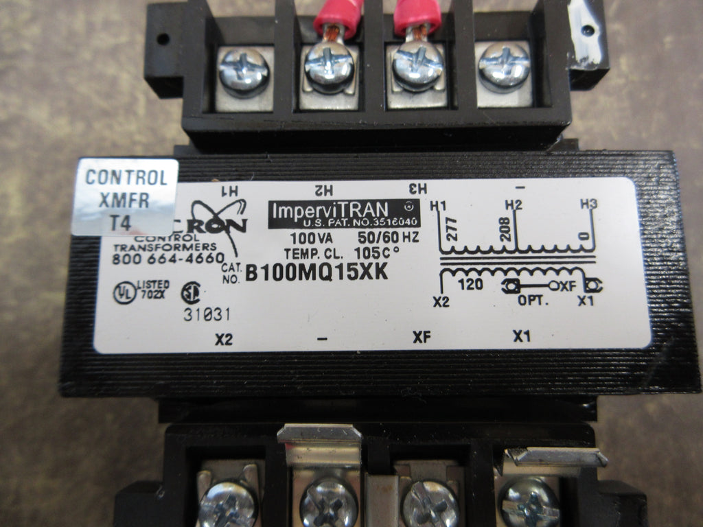 Micron ImperviTRAN Control Transformer Part #: B100MQ15XK 100VA Pri: 208/277V Sec: 120V 50/60Hz Used Loc: 57E5-2