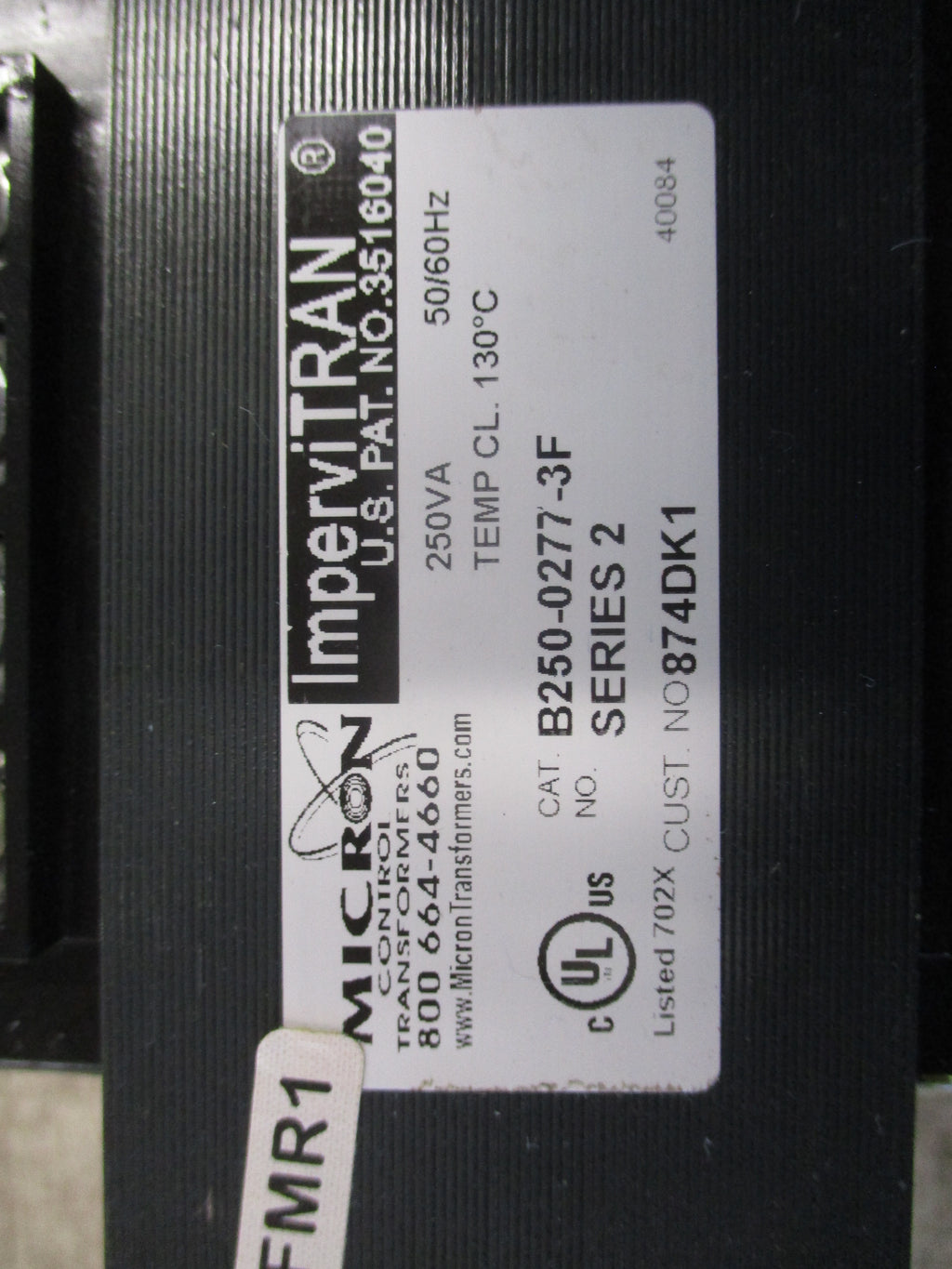 Micron ImperviTRAN Control Transformer B250-0277-3F Ser. 2 250VA Pri: 240/480V Sec: 120V 50/60Hz Used LOC 58D3-6