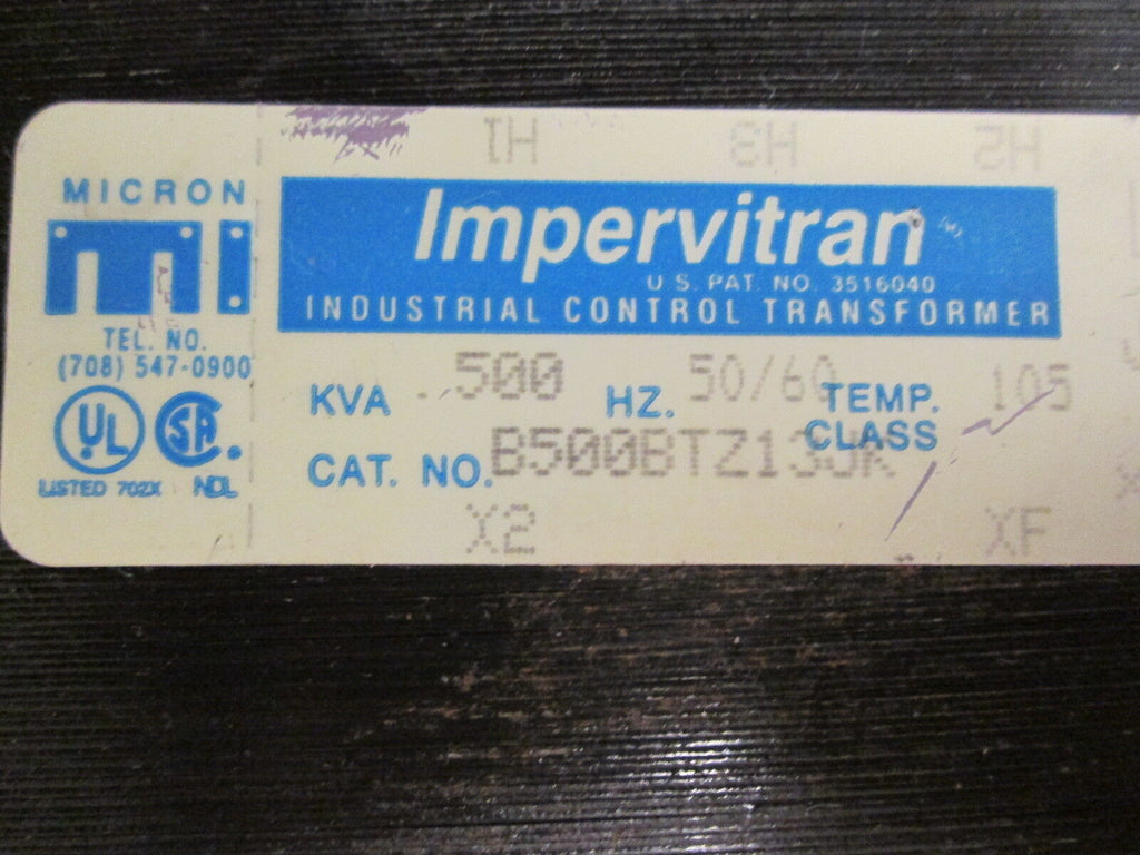 Micron Impervitran Control Transformer B500BTZ13JK 0.500KVA Pr...