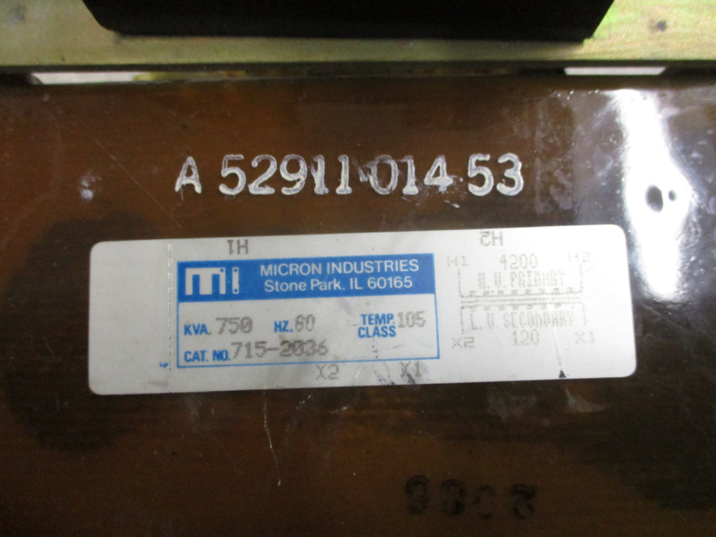 Micron Transformer 715-2036 0.750KVA Pri: 4200V Sec: 120V 60Hz Used LOC 58A1-4