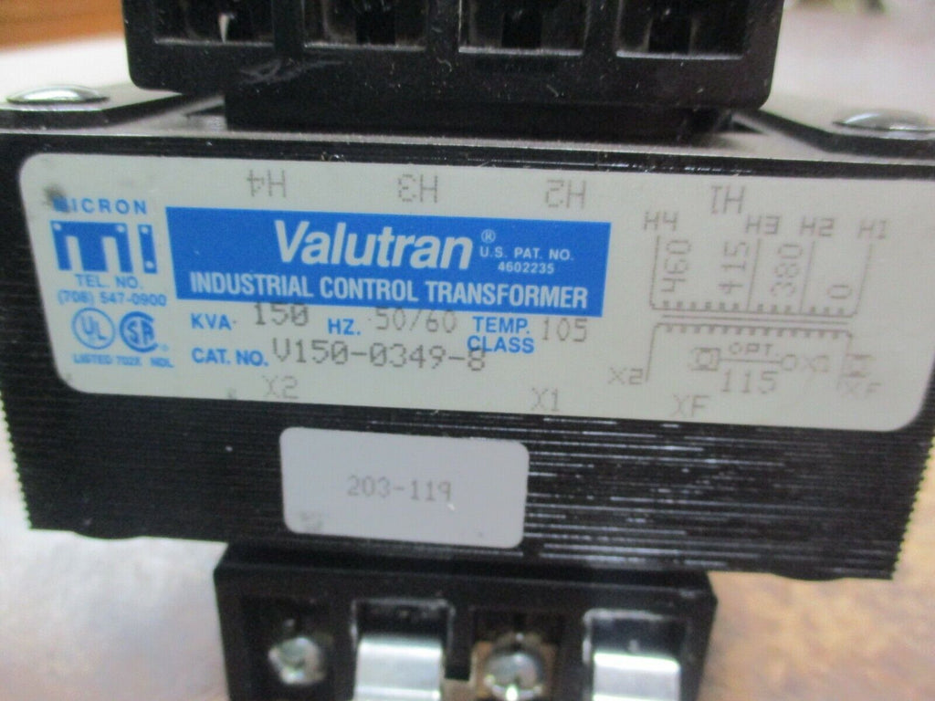 Micron Valutran Control Transformer V150-0349-8 0.150KVA Pri:3...