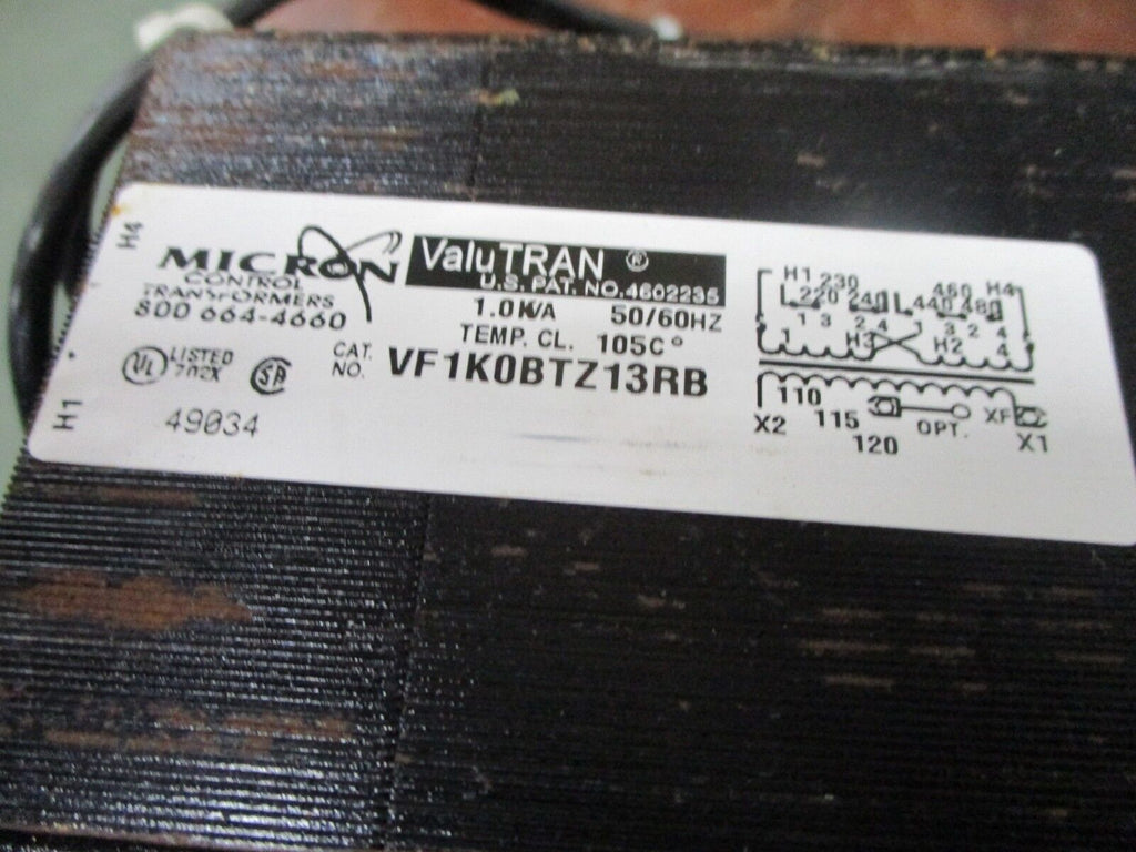 Micron ValuTRAN Control Transformer VF1K0BTZ13RB 1KVA Pri: 240/480V Sec: 120V