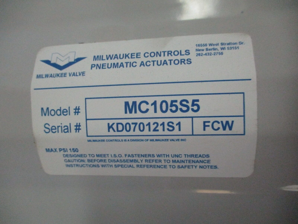 Milwaukee Controls Pneumatic Actuated Valve MC105S5 New Surplus