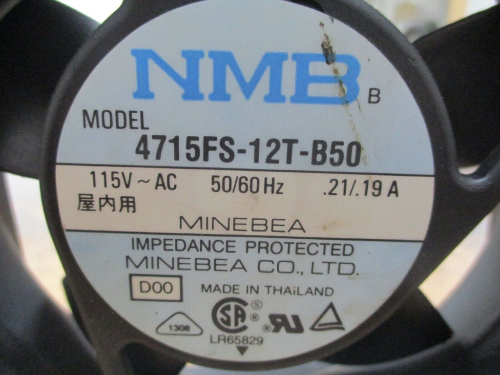 Mineba NMB Fan 4715FS-12T-B50 115V 50/60Hz, 0.21/0.19A, Used Condition: UsedMPN: 4715FS-12T-B50Brand: MinebeaProduct Type: Fan Mineba NMB Fan 4715FS-12T-B50 115V 50/60Hz, 0.21/0.19A, Used Mineba NMB Fan Part #: 4715FS-12T-B50 115V 50/60Hz 0.21/0.19A UsedLOC 20E5-19 Mineba NMB Fan Part #: 4715FS-12T-B50 115V 50/60Hz 0.21/0.19A Uséd LOC 20E5-19