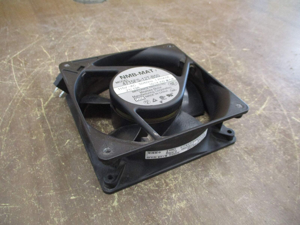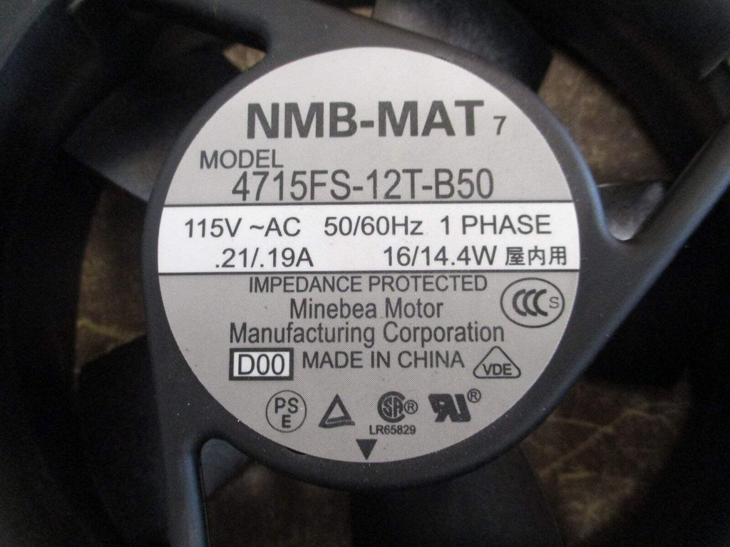 Minebea NMB-MAT Axial Fan 4715FS-12T-B50 115V 0.21/0.19A 50/60Hz 1Ph 16/14.4W Minebea NMB-MAT Axial Fan Part #: 4715FS-12T-B50 115 V 0.21 / 0.19 A 50/60 Hz 1Ph 16 / 14.4 W Used Loc: 59C2-23