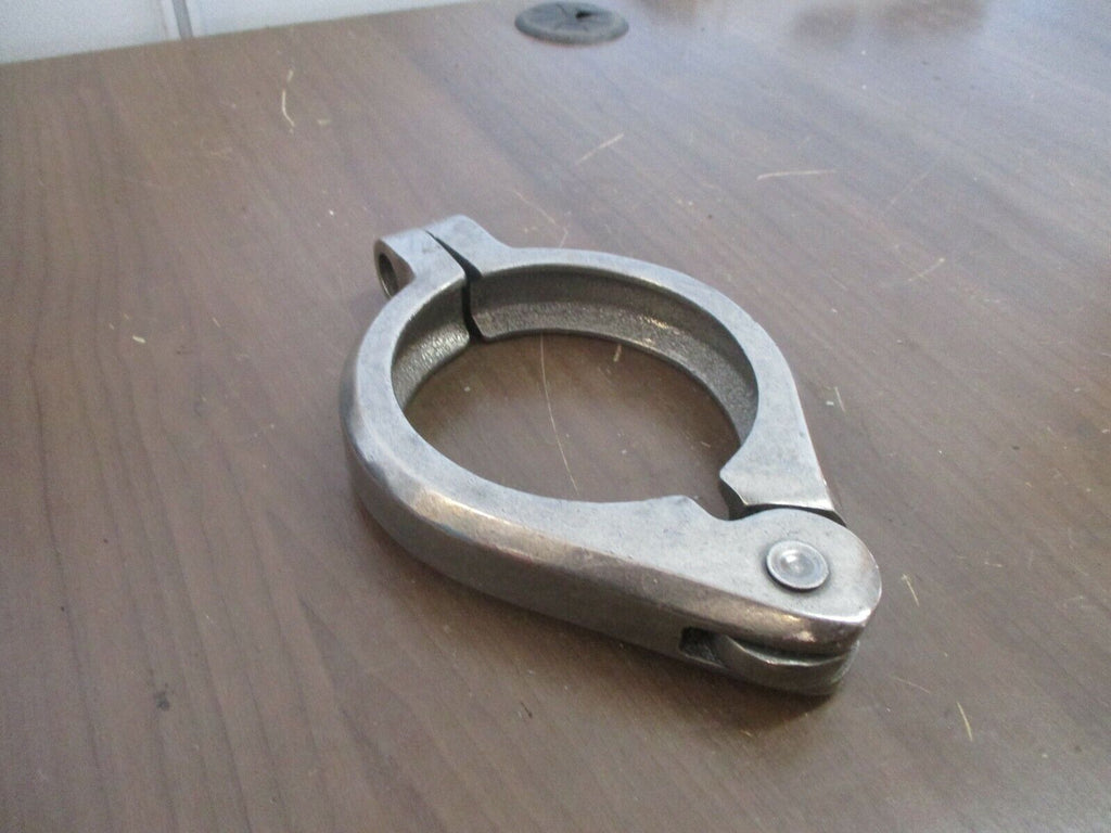 Misc. Brand Hinged Split-Ring Clamp Size: 4" Stainless *No Bolt* Used_x000D_ Condition: UsedMPN: Does Not ApplyBrand: Unbranded Misc. Brand Hinged Split-Ring Clamp Size: 4" Stainless *No Bolt* Used Misc. Brand Hinged Split-Ring Clamp Size: 4" Stainless *No Bolt* Used Loc: 22F1-15 Misc. Brand Hinged Split-Ring Clamp Size: 4" Stainless *No Bolt* Uséd Loc: 22F1-15