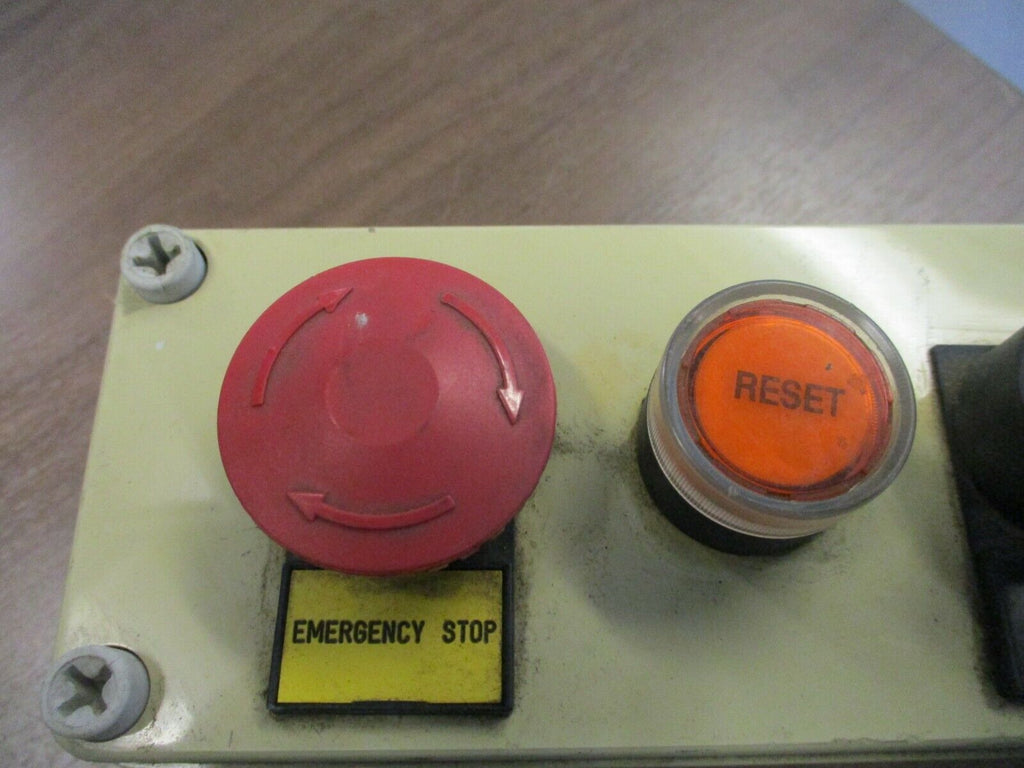 Misc. Brand Push Button Station w/ Buttons 4-Position Buttons:E-StopResetPass/Work SwitchRelease ButtonUsedLOC 15K3-46- Misc. Brand Push Button Station w/ Buttons