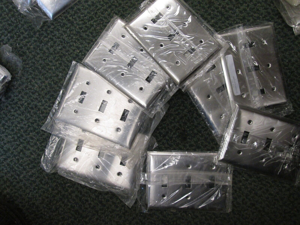 Misc. Brands 3 Gang Triple Toggle Covers, SS3, Stainless Steel, Lot of 8