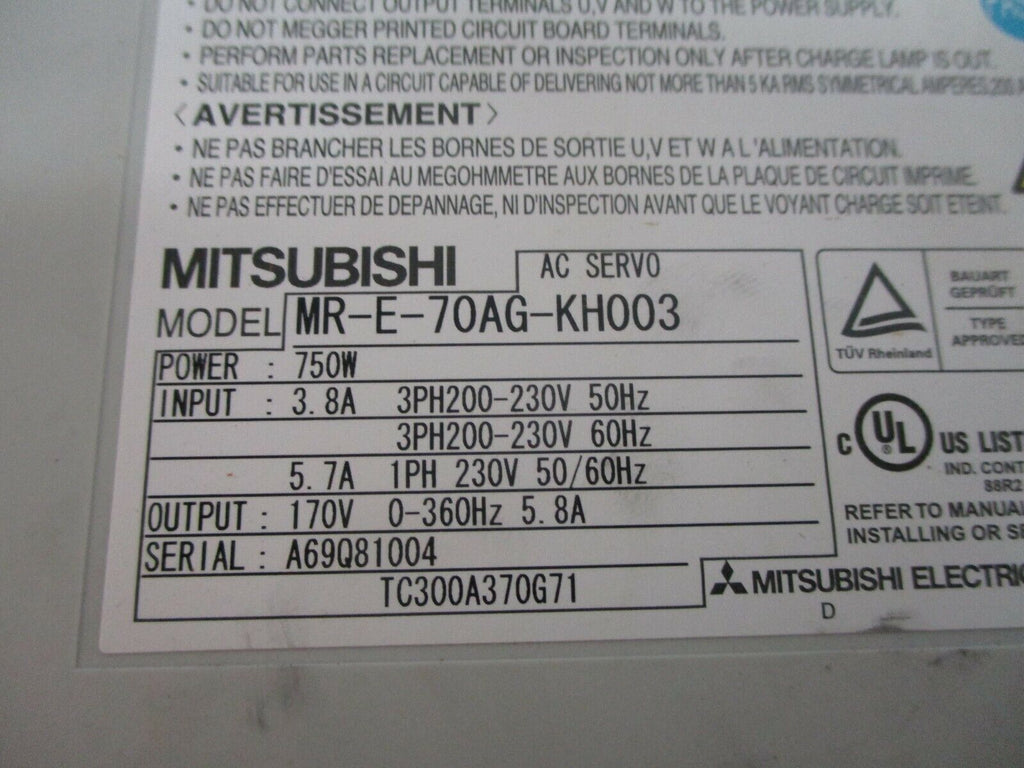 Mitsubishi AC Servo Drive MR-E-70AG-KH003 750W Used Condition:...