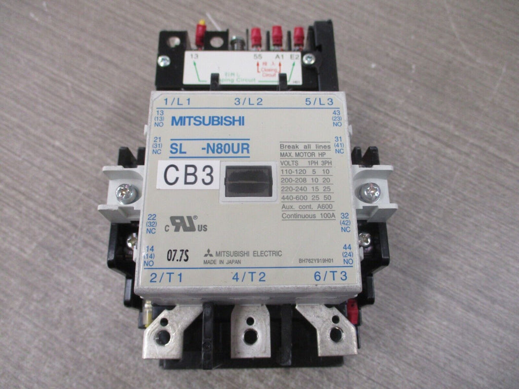 Mitsubishi Contactor SL-N80UR 200-240V Coil 100A 600V Used Condition: UsedBrand: MitsubishiType: Definite Purpose ContactorMaximum Amperage: 100 ACurrent Rating: 100 ACoil Voltage: 200/240 VMPN: SL-N80UR Mitsubishi Contactor SL-N80UR 200-240V Coil 100A 600V Used Mitsubishi Contactor Part #: SL-N80UR 200-240V Coil 100A 600V UsedLOC: 27I3-22 Mitsubishi Contactor Part #: SL-N80UR 200-240V Coil 100A 600V Uséd LOC: 27I3-22