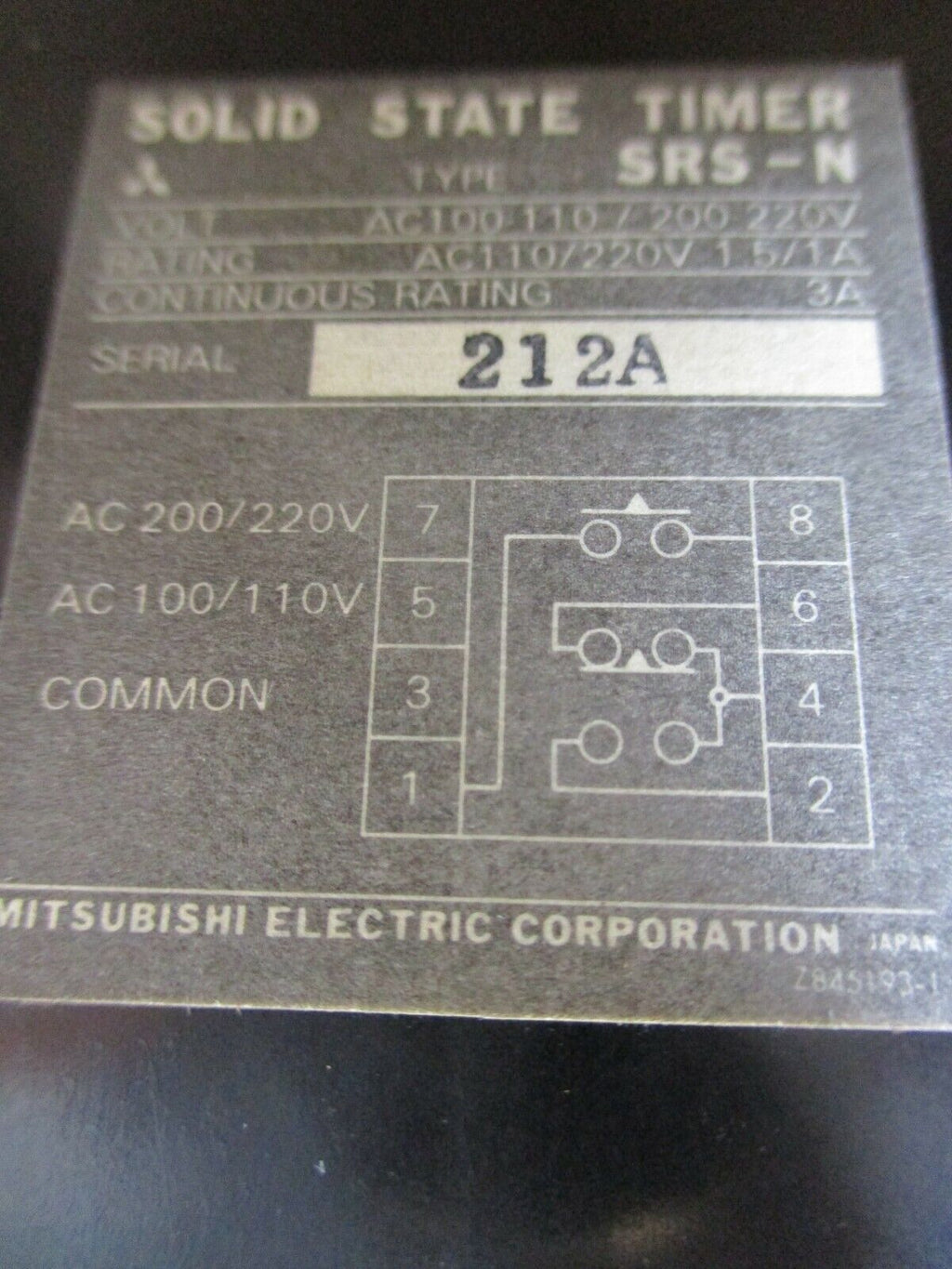 Mitsubishi Solid State Timer SRS-N 100/110V 200/220V Delay: 0....