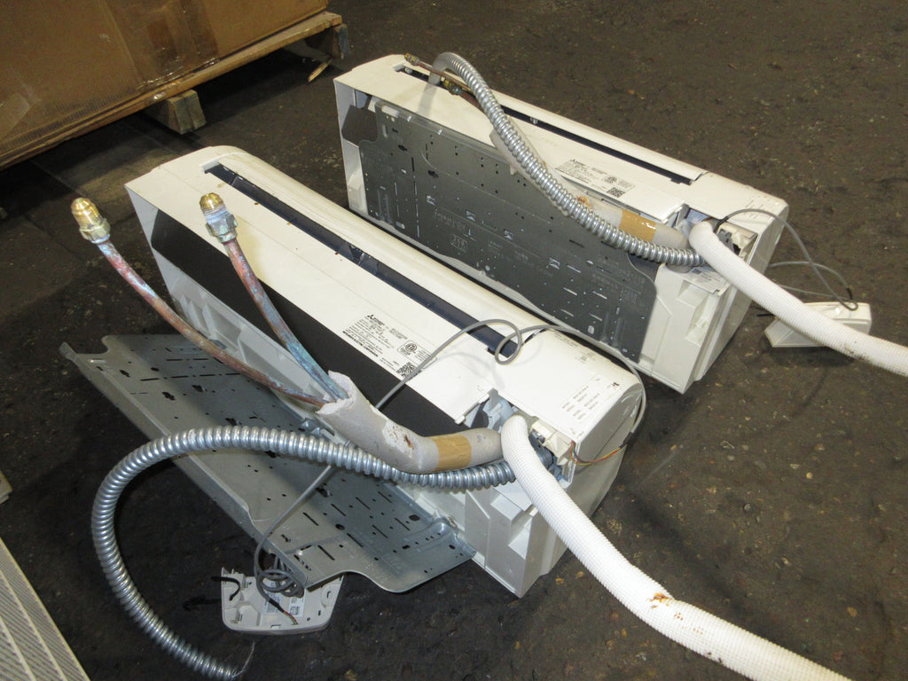 Mitsubishi Split-System Heat Pump Part #: MXZ-4C36NA 208/230 V 1Ph 60 Hz (2) MSZ-GE12NA-9 Wall Units (2) Thermostat Dims: 44" x 40" x 33" Weighs: 200 LBS Used Loc: AB11-8348