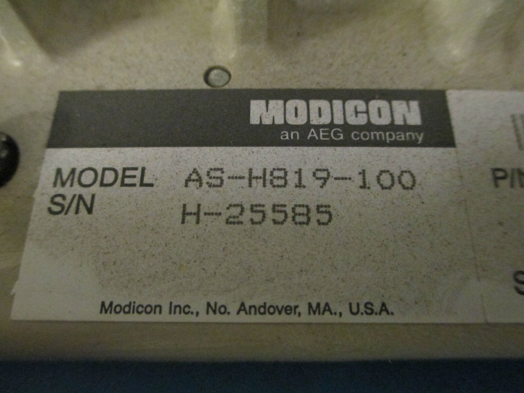Modicon 7 Slot PLC Rack, AS-H819-100 Condition: UsedBrand: ModiconMPN: AS-H819-100Country of Manufacture: United States Modicon 7 Slot PLC Rack, AS-H819-100 Modicon PLC Rack Part # AS-H819-100 7 Slots Loc 4F2-3 Modicon PLC Rack Part # AS-H819-100 7 Slots Loc 4F2-3