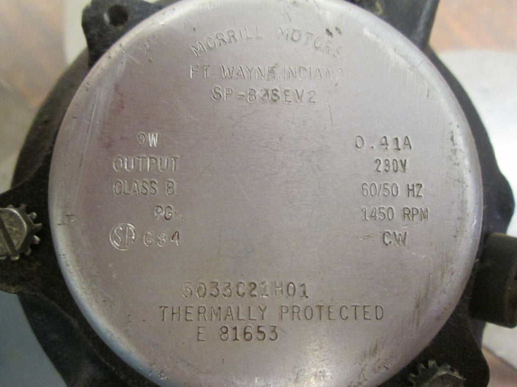 Morrill Motors Fan SP-89SEV2 230V 60/50Hz 1450RPM 9W Used Cond...