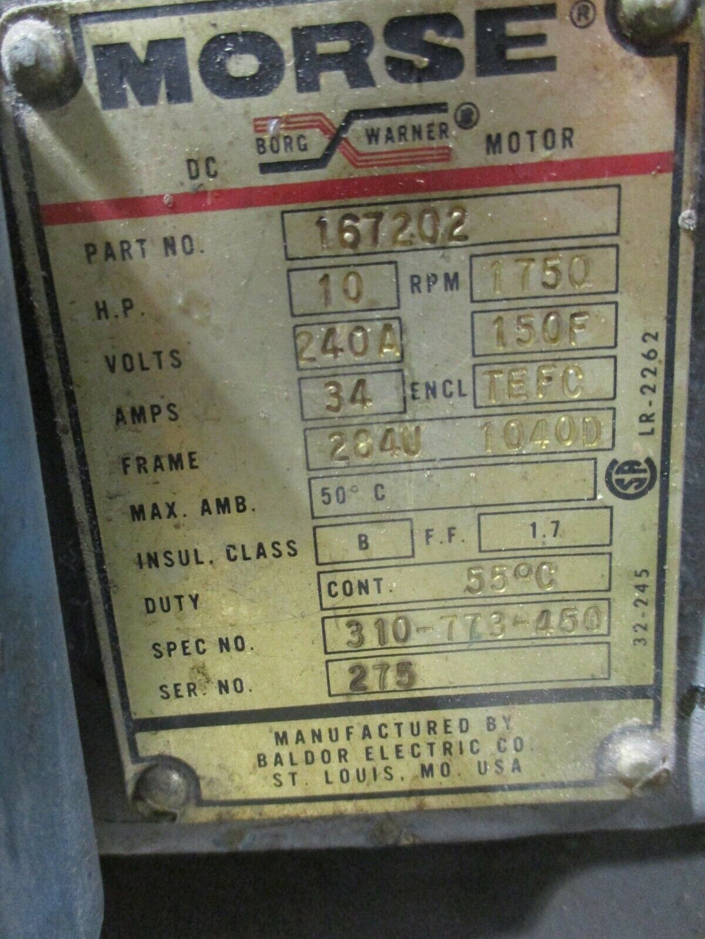 Morse Borg Warner DC Motor Part # 167202 10 HP 1750RPM 240...