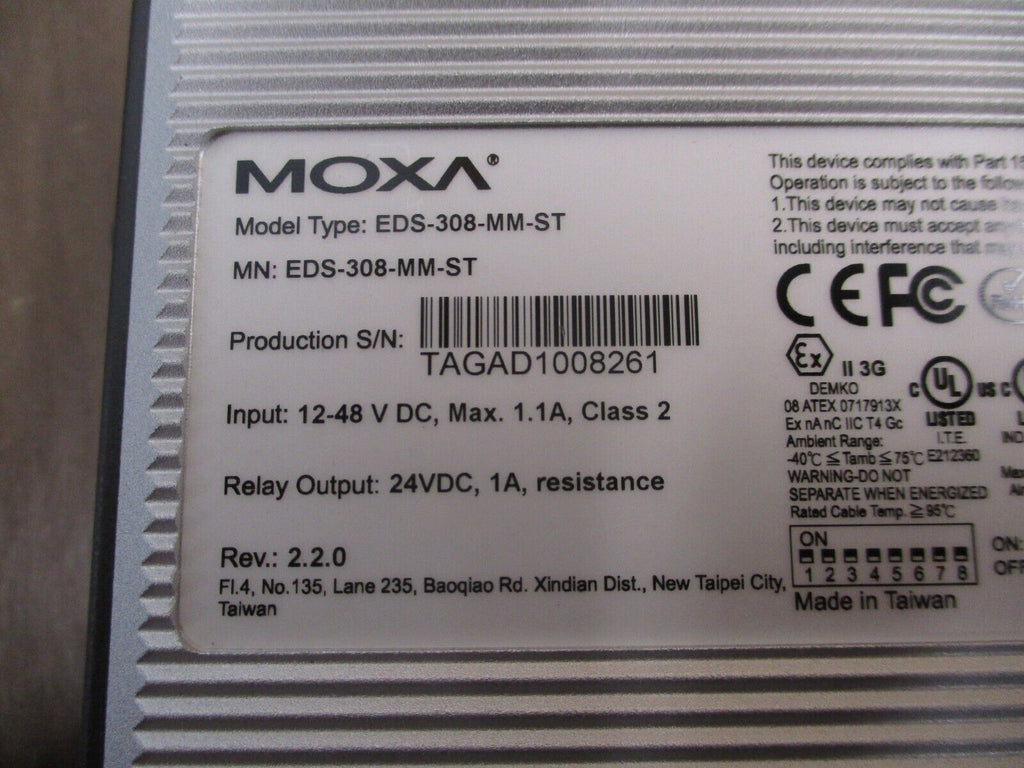 Moxa Industrial Unmanaged Ethernet Switch EDS-308-MM-ST 8-Port Used Condition: UsedBrand: MoxaMPN: EDS-308-MM-STModel: Moxa Industrial Unmanaged Moxa Industrial Unmanaged Ethernet Switch EDS-308-MM-ST 8-Port Used Moxa Industrial Unmanaged Ethernet Switch Part #: EDS-308-MM-ST 8-Port Used Loc: 28H5-21 Moxa Industrial Unmanaged Ethernet Switch Part #: EDS-308-MM-ST 8-Port Uséd Loc: 28H5-21