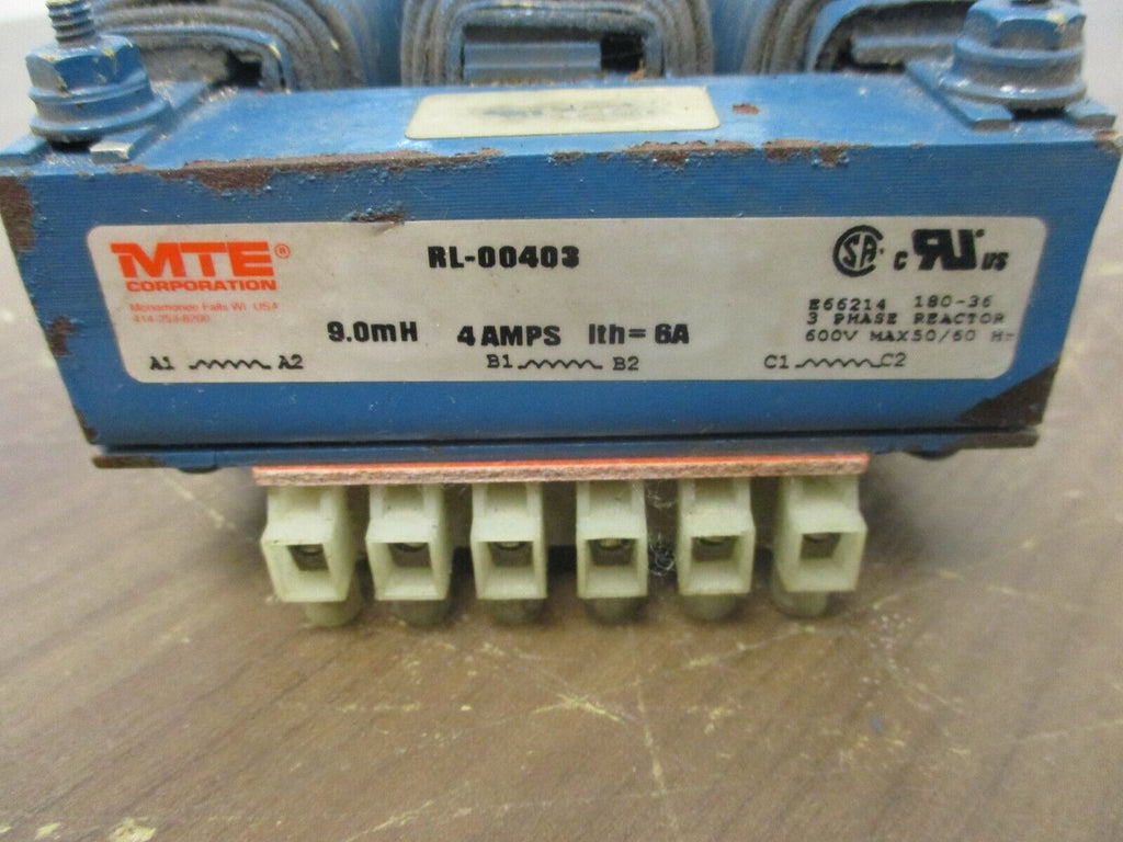 MTE 3-Phase Line Reactor RL-00403 9.0mH 4A 600V Used Condition...