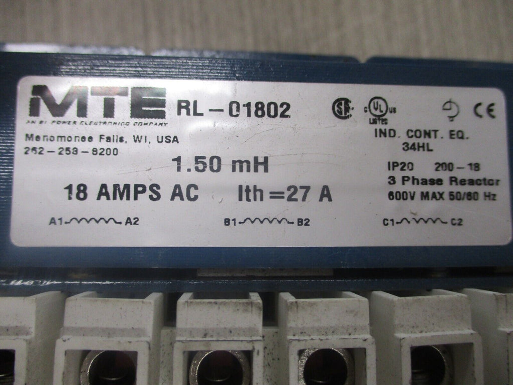 MTE 3Ph Line Reactor RL-02502 1.20mH 25A 600V 50/60Hz Used_x000D_ Condition: UsedBrand: MTEColor: BlueMPN: RL-02502 MTE 3Ph Line Reactor RL-02502 1.20mH 25A 600V 50/60Hz Used MTE 3Ph Line Reactor Part #: RL-02502 1.20mH 25A 600V 50/60Hz UsedLOC: 28G2-4 MTE 3Ph Line Reactor Part #: RL-02502 1.20mH 25A 600V 50/60Hz Uséd LOC: 28G2-4