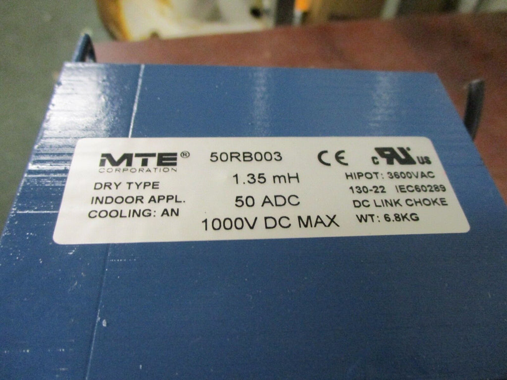 MTE DC Link Choke 50RB003 1.35mH 50A DC 1000V DC Dry Type Used_x000D_ Condition: UsedBrand: MTEMPN: 50RB003 MTE DC Link Choke 50RB003 1.35mH 50A DC 1000V DC Dry Type Used MTE DC Link Choke Part # 50RB003 1.35mH 50A DC 1000V DC Dry Type UsedLOC 10D3-25 MTE DC Link Choke Part # 50RB003 1.35mH 50A DC 1000V DC Dry Type Uséd LOC 10D3-25
