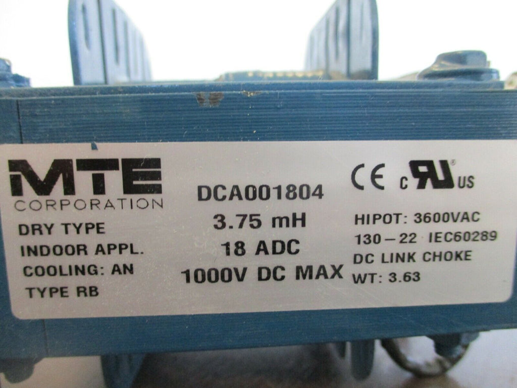 MTE DC Link Choke DCA001804 3.75mH 18A 1000VDC Hipot: 3600VAC Used_x000D_ Condition: UsedMPN: DCA001804Brand: MTE MTE DC Link Choke DCA001804 3.75mH 18A 1000VDC Hipot: 3600VAC Used MTE DC Link Choke Part #: DCA001804 3.75mH 18A 1000VDC Hipot: 3600VAC UsedLOC 13H3-43 MTE DC Link Choke Part #: DCA001804 3.75mH 18A 1000VDC Hipot: 3600VAC Uséd LOC 13H3-43