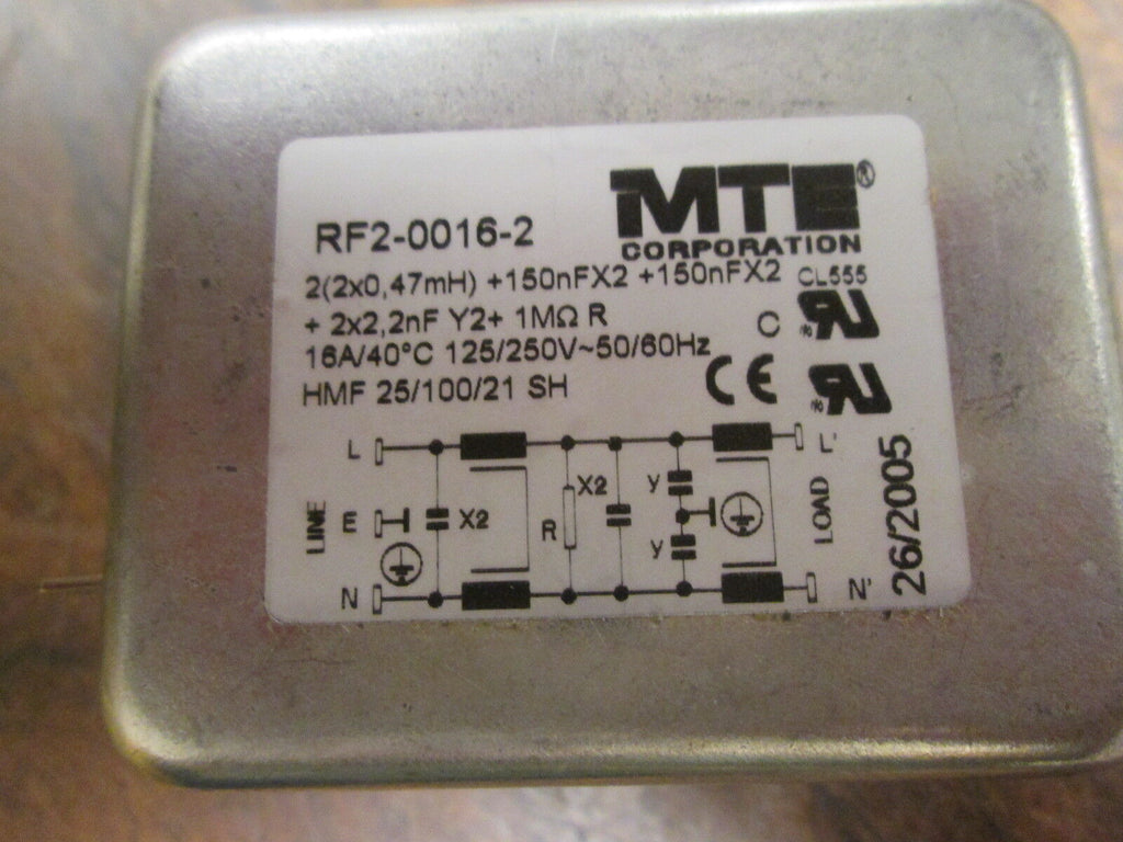 MTE RFI Filter RF2-0016-2 125/250V 16A 50/60Hz Used