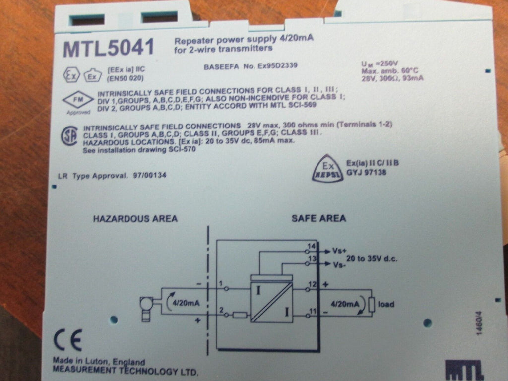MTI Intrinsically Safe Galvanic Isolator MTL5041 28V 300 0hm 93mA_x000D_ Condition: UsedBrand: MTIMPN: MTL5041 MTI Intrinsically Safe Galvanic Isolator MTL5041 28V 300 0hm 93mA MTI Intrinsically Safe Galvanic Isolator MTL5041 28V 300 0hm 93mALOC 19J4-23 MTI Intrinsically Safe Galvanic Isolator MTL5041 28V 300 0hm 93mA LOC 19J4-23