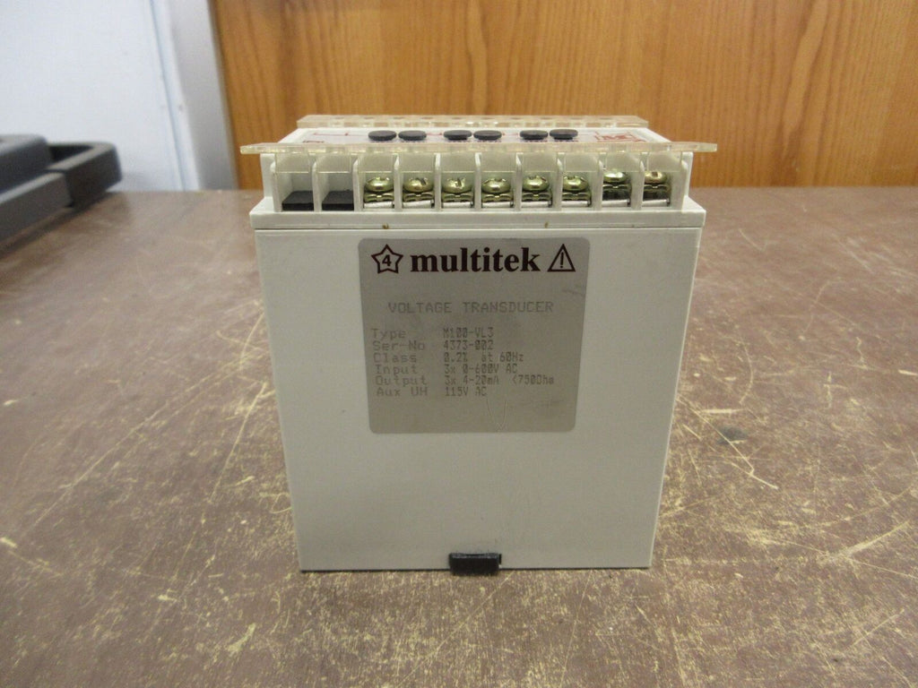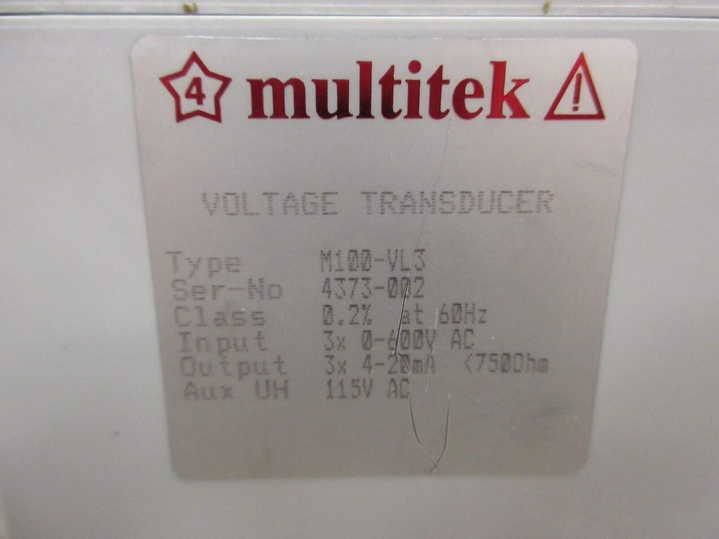 Multitek Voltage Transducer M100-VLS Input: 0-600VAC Output: 4-20mA Used Multitek Voltage Transducer Part #: M100-VLS Input: 0-600 VAC Output: 4-20mA Used Loc: 59G2-14