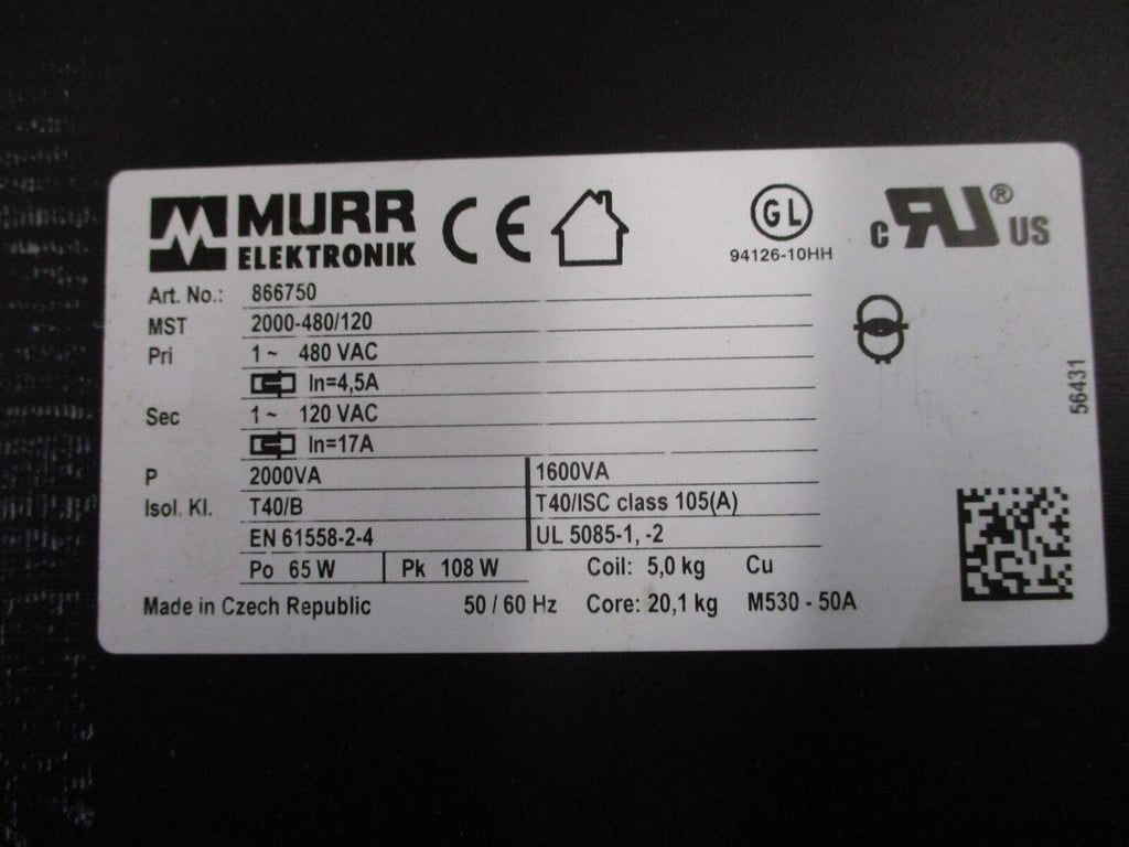 Murr Elektronik Transformer 866750 2000VA Pri: 480V Sec: 120V 1Ph Used